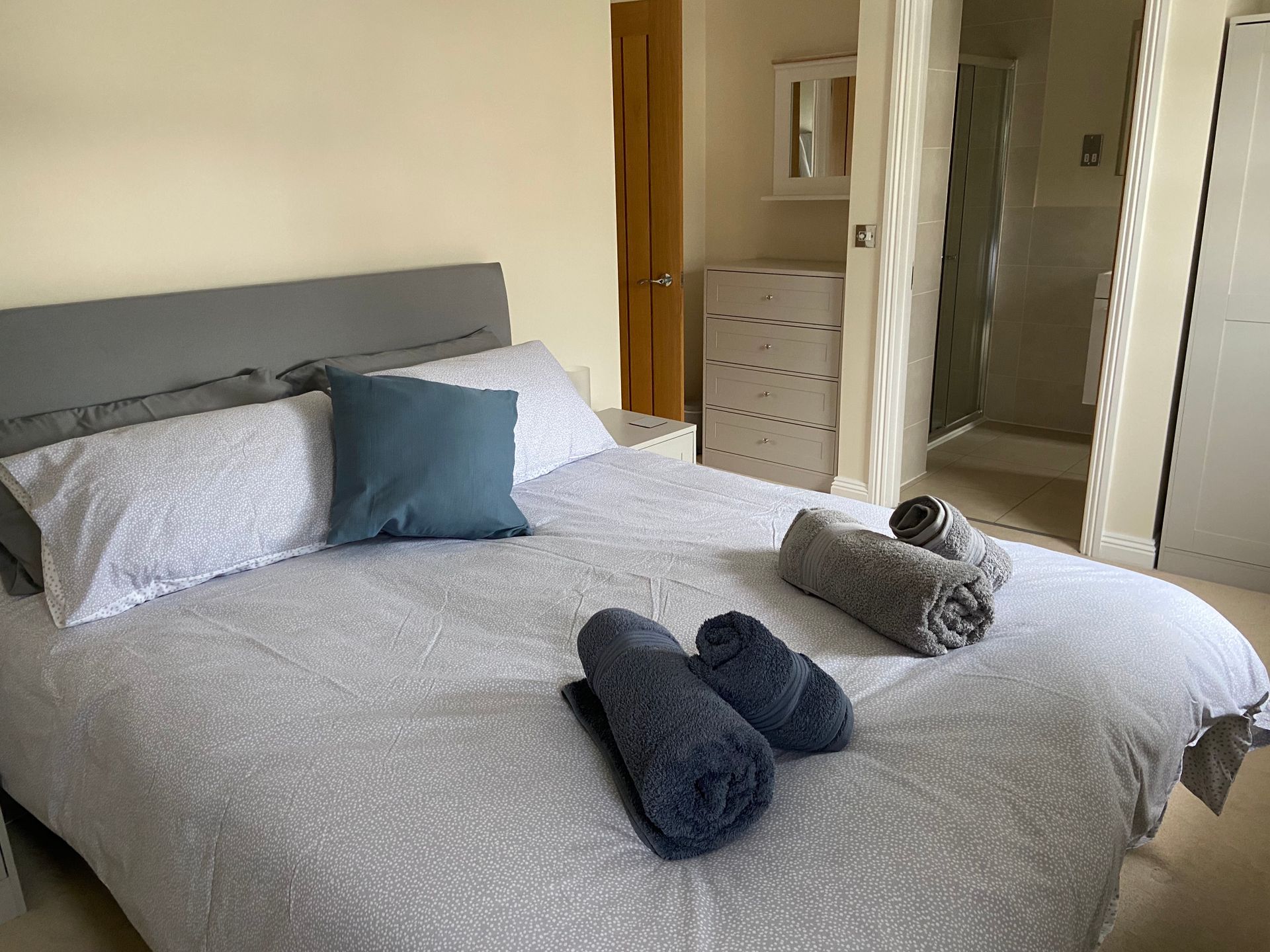 Bedroom 1: Kingsize bed, smart TV, wardrobe, chest of drawers, clock radio with USB/wireless charger and roman blind with blackout lining